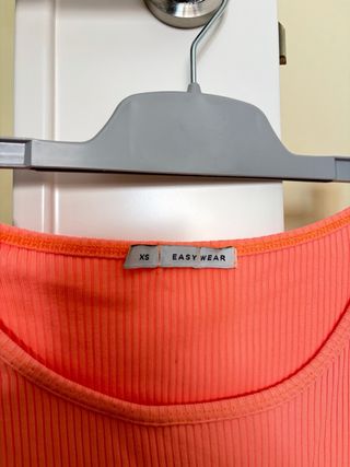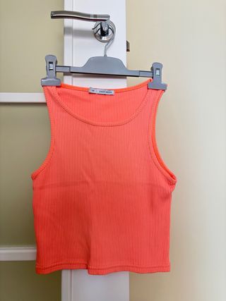 Top de tirantes en color naranja, con un diseño acanalado que le da un toque moderno. Es una prenda cómoda y versátil. - Tejido elástico y suave. - Corte ajustado. - Cuello redondo.