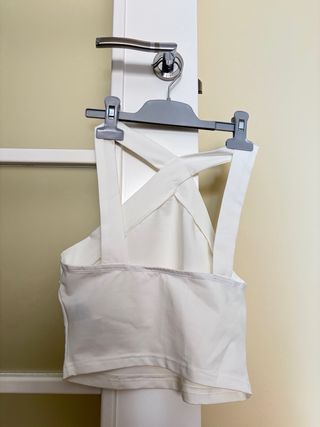 Top con diseño asimétrico y tirantes cruzados. - Tejido suave y cómodo. - Corte moderno y favorecedor.