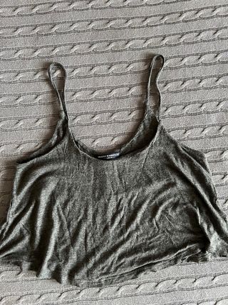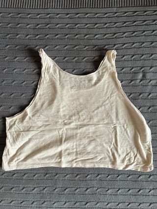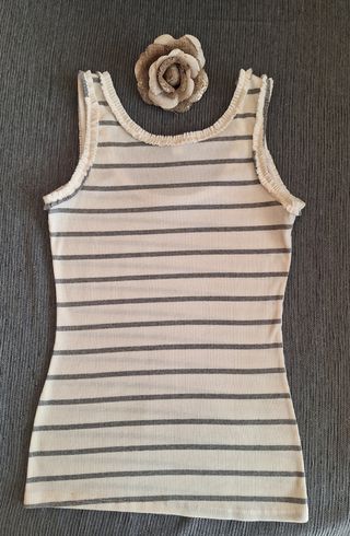 Camiseta de tirantes, color beig y gris. Talla S/M Prenda entallada que se ajusta a la cintura.