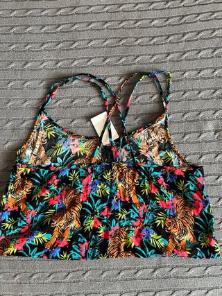 Preciosa camiseta de tirantes con un bonito estampado de tigres y flores tropicales. Es de color multicolor y tiene un diseño muy favorecedor. - Es de talla L ancha pero corta. - La tela es ligera y fresca, ideal para el verano. - nuevo con etiqueta.