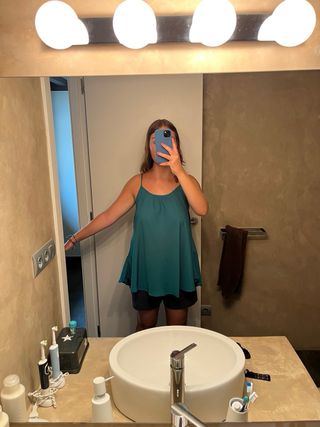 Blusa de color verde de la marca Lingam Barcelona. Talla M/L y 100% poliéster. - Tirantes finos y ajustables (visible en la foto) - Caída fluida - Usada 3-4 veces.