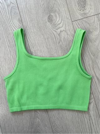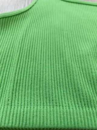 Top de tirantes en un llamativo color verde fosforito. Su diseño acanalado le da un toque moderno. - Tirantes anchos. - Escote cuadrado. - Tejido elástico y cómodo.