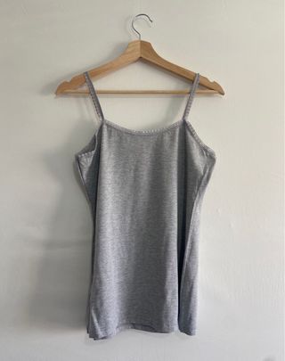 Camiseta básica de tirantes en color gris. Perfecta para el día a día o como prenda interior. - Tirantes finos. - Ribete decorativo en escote y sisas.