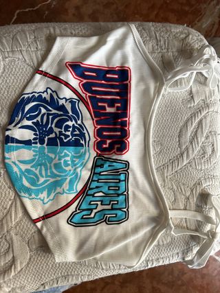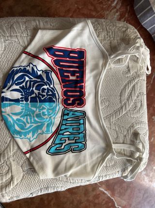 Camiseta básica de tirantes con diseño de Buenos Aires. Nueva sin estrenar. - Diseño frontal con texto Buenos Aires. - Estampado gráfico en azul y blanco. - Tirantes finos con lazada.