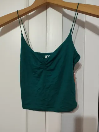 Top tirantes verde oscuro fruncido