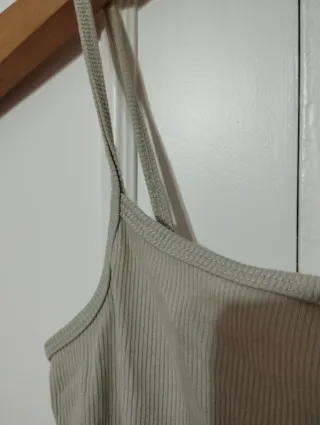 Top de tirantes finos en color beige. Su tejido acanalado le da un toque moderno. Talla S de Tally Weijl. - Diseño de tirantes. - Tejido acanalado.