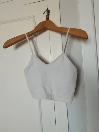 Top de tirantes con un diseño acanalado. - Tejido suave y elástico. - Tirantes finos ajustables. - Corte cropped.
