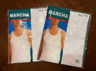 Pack de dos camisetas interiores de la marca MARCHA. Son de algodón y de corte tirante. - Algodón. - Corte tirante.