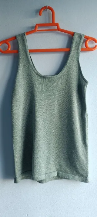 Camiseta de tirantes con un diseño sencillo y elegante. - Escote en pico. - Tirantes finos ajustables. - Tiene ligeras manchas a pesar de estar limpia, son muy sutiles, si te fijas en la foto se aprecia que no es mucho.