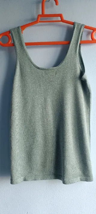 Camiseta de tirantes en tono verde claro con brillo. Marca Up2Fashion, talla S. Nueva. Es elástica