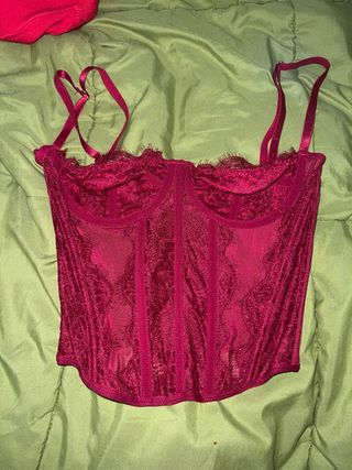 Corsé de encaje en color rojo. Un diseño elegante y llamativo. - Tejido de encaje. - Tirantes ajustables. - Detalle de encaje en el escote.