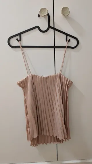 Preciosa blusa de Mango con un diseño plisado muy elegante. Es una prenda nueva, sin usar y con etiqueta. - Diseño plisado. - Tirantes finos. - Acabado satinado.
