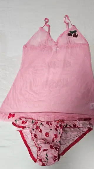 Conjunto lencería rosa con cerezas