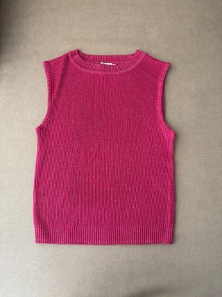 Top sin mangas en un vibrante color fucsia con un toque brillante. - Tejido de canalé. - Cuello redondo. - Diseño sin mangas.
