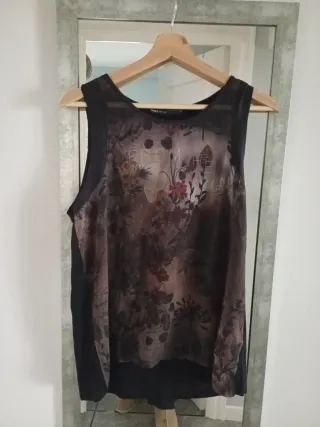 Blusa con estampado floral de Zara. - Diseño con escote en V. - Corte amplio y vaporoso. - Tirantes