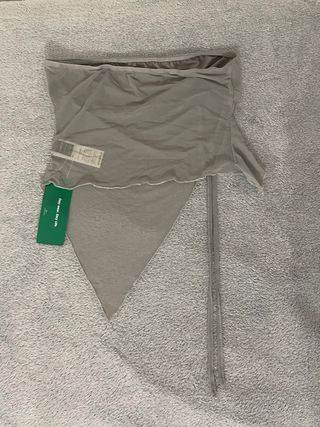 Top gris de SHEIN con diseño sin tirantes y detalle de fruncido. - Tejido ligero y fluido. - Tiras ajustables para un ajuste personalizado. - Estilo triangular en la parte inferior.