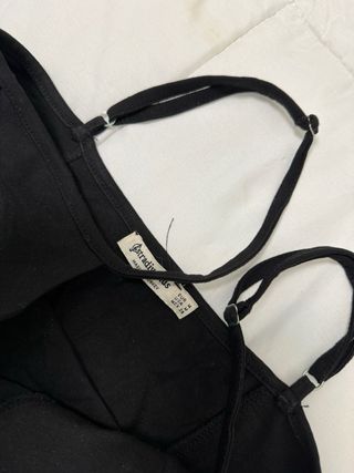 Top negro con tirantes finos, ideal para combinar. - Diseño liso. - Tejido suave al tacto.