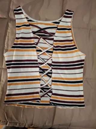 Top elegante de tejido satinado. - Diseño con tirantes finos. - Corte asimétrico y favorecedor. Es talla L pero da muy poca talla, yo soy S/M