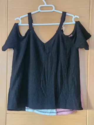 Camiseta con tirantes finos y diseño de hombros descubiertos. La tela es ligera y con caída. - Diseño de hombros descubiertos. - Tirantes ajustables. - Tejido ligero.