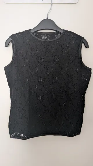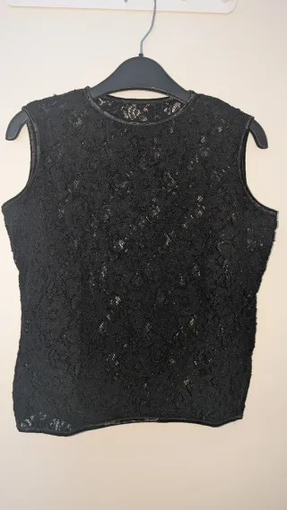 Top elegante de color negro con detalles de encaje. - Diseño con copas. - Tirantes finos. - Adorno de encaje en el lateral.