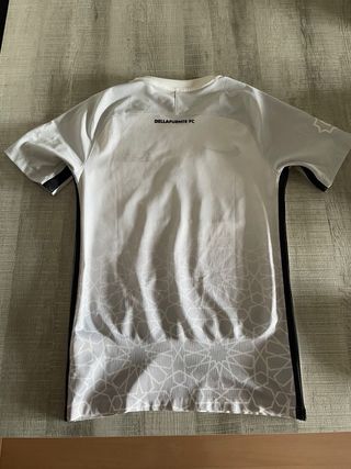 Camiseta deportiva de la marca Nike Dri-Fit. No se ha usado nunca. - Color blanco con detalles en gris. - Estampado geométrico en la parte inferior. - Logo de Dellafuente FC en el pecho.