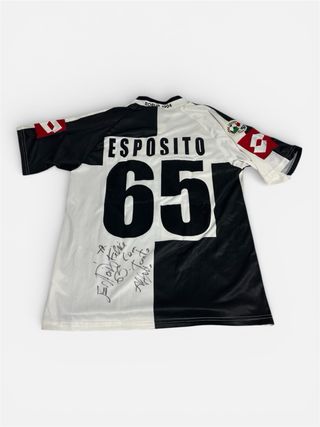 Camiseta usada en partido del AC Siena, temporada 2005/06. Pieza de mi colección personal. Match Worn del centrocampista Gennaro Esposito, dorsal 65. Dedicada y firmada por el jugador. Estado: 8/10 (Buen estado general, alguna pequeña manchita del partido) Marca: Lotto Talla: M NO SE REBAJA EL PRECIO. fútbol calcio foot maglia maillot vintage france francia Olympique lyon marseille psg Barcelona Madrid Valencia Sevilla betis málaga granada almería dépor zaragoza juventus inter milan manchester united city bayern borussia arsenal Alavés Granada athletic osasuna troyes lille monaco rennes lens ajaccio
