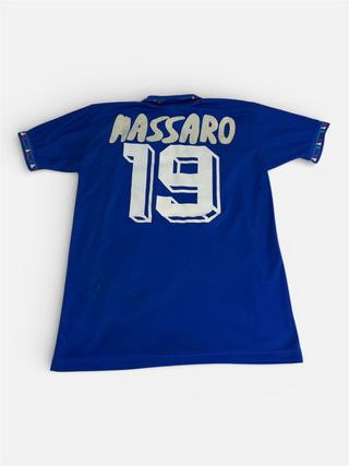 Camiseta Selección Italia, temporada 1992/93. Pieza de mi colección personal. Dorsal 19, de Daniele Massaro Estado: 8/10 (Muy buen estado general, aunque las letras del dorsal están un poco desgastados debido a la antigüedad) Marca: Diadora Talla: M NO SE REBAJA EL PRECIO fútbol calcio foot maglia maillot vintage france francia Olympique lyon marseille psg Barcelona Madrid Valencia Sevilla betis málaga granada almería dépor zaragoza juventus inter milan manchester united city bayern borussia arsenal Alavés Granada athletic osasuna troyes lille monaco rennes lens ajaccio nantes Palermo sampdo