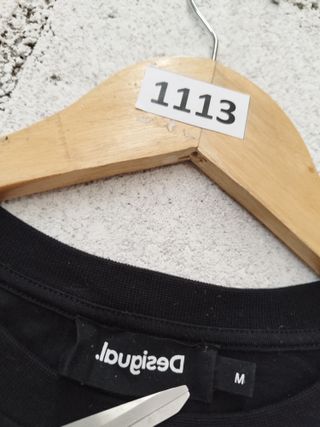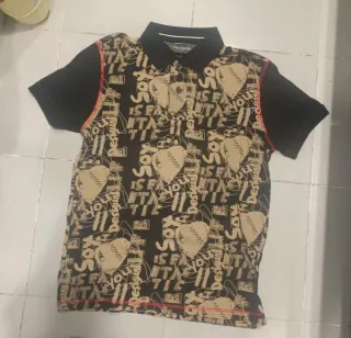Camiseta Desigual con un diseño llamativo y original, nueva - Mangas cortas de color negro. - Cuerpo principal con estampado gráfico. - Cuello tipo polo.