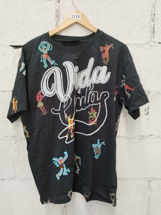 Camiseta de manga corta con un diseño gráfico llamativo. - Casual. - Estampado de mano. - Detalles de texto y elementos gráficos. - Calza amplia.
