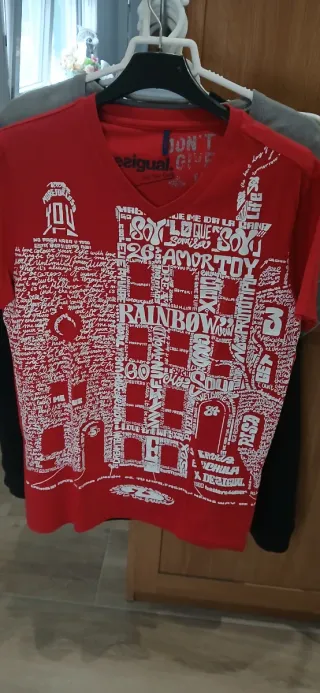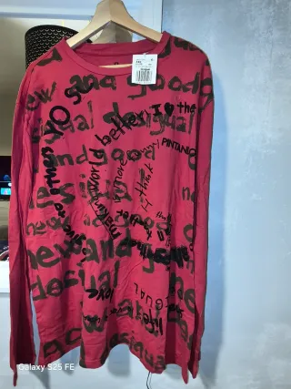 Camiseta de manga larga con un diseño llamativo y texto estampado. - Color rojo vibrante. - Estampado de texto en blanco y negro. - Cuello redondo VENDO LAS DOS POR:22€