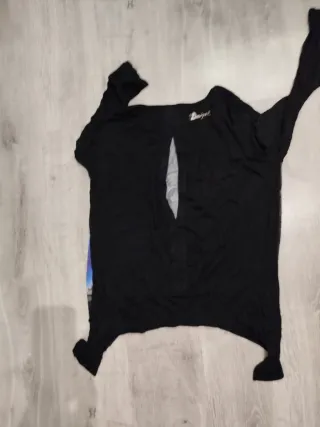 Camiseta original Desigual de manga larga, con estampado multicolor muy característico de la marca. Tiene escote en pico, tejido elástico y detalle ajustable con lazada en el lateral, que estiliza mucho la silueta. Muy cómoda y favorecedora, ideal para entretiempo o para darle un toque diferente a un look básico. Estado: buen estado, sin manchas ni rotos (ver fotos). Cualquier duda, ¡escríbeme sin problema! 😊