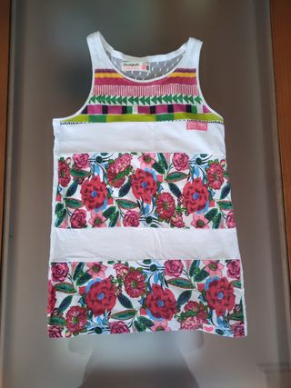 Preciosa camiseta de tirantes para niña, de la marca Desigual. Talla 13/14. Es de color multicolor con un diseño alegre y llamativo. - Confeccionado en tejido de algodón. - Diseño único y original de Desigual. - Ideal para verano.