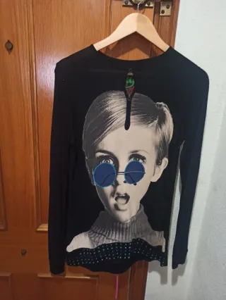 Camisetas de manga larga con un llamativo estampado. - Diseño frontal con imagen de niña con gafas. - Detalle de tachuelas brillantes en el bajo.y otro por debajo tejido blusa, 7€ cada una, hago lotes y envió, no ofertas.