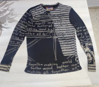 Camiseta talla M de Desigual. Mangas distintas y estilo camuflaje. El interrogante está bordado. Impecable.