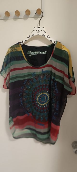 Camiseta de algodón, multicolor, talla S. Marca Desigual en buen estado