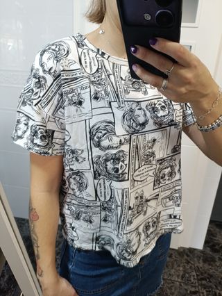 Camiseta con estampado de estilo cómic en blanco y negro. - Diseño llamativo y original. - Manga corta.