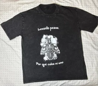 Camiseta estilo oversize, compuesta 100% de algodón pesado, gramaje de 240 y una tela de muy buena calidad. Color crema. Es unisex. Frase: ONE MORE REP. Push trough the pain.