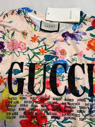 Camiseta de manga corta con un diseño estampado llamativo. Presenta un estilo urbano con referencias a ciudades y marcas. - Estampado integral con texto y gráficos. - Cuello redondo. - Tejido cómodo para el día a día.