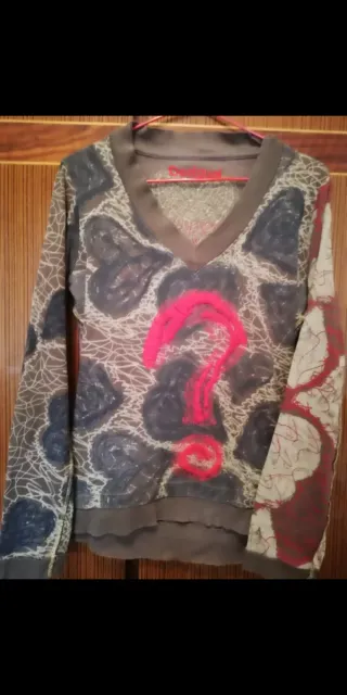 Camiseta de estilo grunge con un diseño desgastado y detalles rotos. - Estampado frontal con efecto salpicado y goteo. - Aberturas en hombros y bajo. - Corte moderno y atrevido.