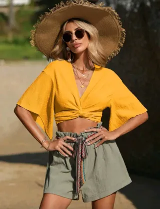 Camiseta cómoda y estilosa para premamá. Diseñada para adaptarse a los cambios del embarazo, ofrece un ajuste favorecedor. - Diseño cruzado en el pecho. - Manga larga. - Tejido suave y elástico.