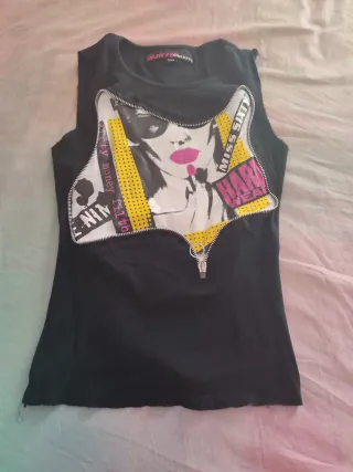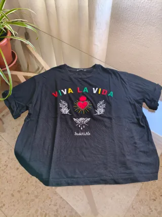 Camiseta de manga corta con un diseño moderno y detalles únicos. - Diseño de estrella gris en la parte frontal. - Aberturas en los hombros para un estilo original. - Tejido acanalado para mayor comodidad. Fue un regalo, le queda pequeña y nos caduco el ticket por dos dias