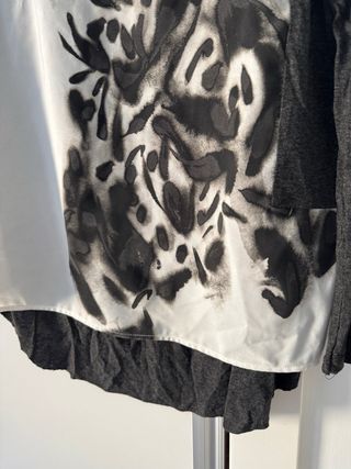 Camiseta de verano con un diseño llamativo. - Estampado estilo bandana en la parte superior. - Diseño degradado de blanco a negro. - Sin mangas.