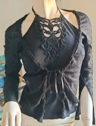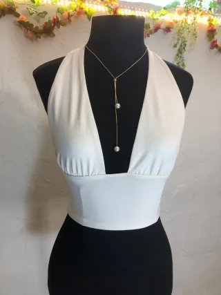 Top halter de la marca Clever, talla S. Escote pronunciado.Detalle de banda en la cintura de 35cm, largo 48cm. SÓLO HAGO ENVIOS📢📢 Hago descuento por la compra de varios artículos, para compensar el transporte 😉👗👒⚘️