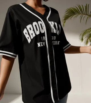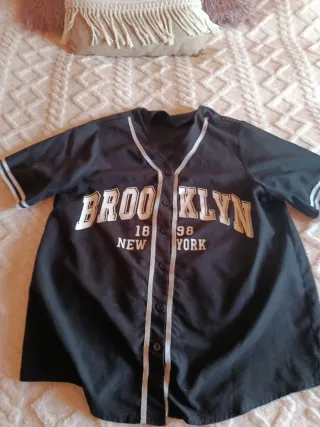 Camiseta de estilo béisbol con diseño de Brooklyn. En la etiqueta pone 1xl pero da para 46/48 - Manga corta. - Cuello en V. - Ribetes blancos en cuello y mangas. - Cierre de botones.