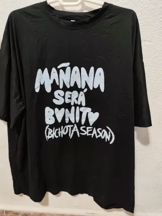 Camiseta negra con el diseño Mañana Será Bonito (Bichota Season). - Diseño llamativo en blanco. - Estilo oversize.