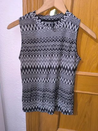 Camiseta sin mangas con un llamativo estampado de zigzag. - Diseño de cuello alto. - Tejido de punto. - Estilo moderno y versátil.