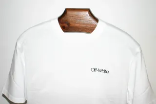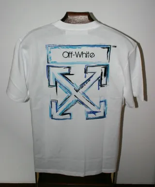 Camiseta blanca de Off-White. Diseño icónico con el logo de flechas en la parte trasera en tonos azul y negro con efecto artístico, y detalle “Off-White™” en la parte superior. 📏 Medidas: 73 cm de largo 55 cm de axila a axila ✔️ Talla M ✔️ Color blanco ✔️ Nueva Camiseta Off-White con un llamativo diseño de flechas en tonos azules sobre fondo blanco. Perfecta para añadir un toque de estilo. - Diseño de flechas con efecto pincelada. - Logo de Off-White en la parte superior.