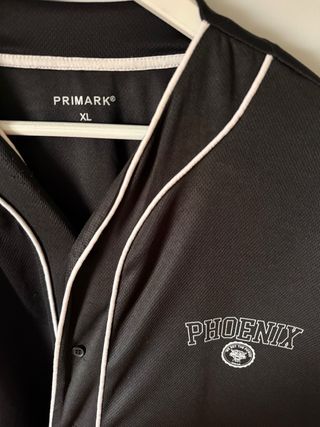 Camiseta estilo béisbol de manga corta con detalles en blanco. Sin usar. PRECIO NEGOCIABLE - Diseño con logo Phoenix en el pecho. - Cuello en V con ribete blanco. - Cierre de botones. - Tejido ligero y transpirable.