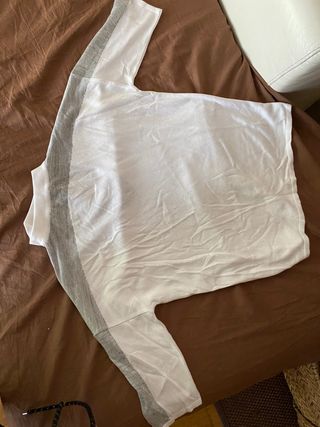 Caiseta corta estilo sudadera. Es anchita, con capucha. Impecable