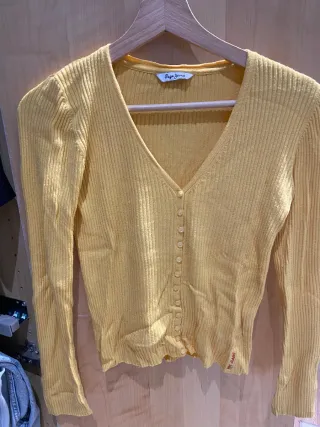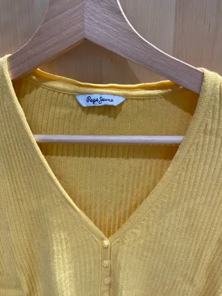 Camiseta manga larga color amarillon de la marca Pepe Jeans, con escote de V precioso y estilo entallado pero flexible y se adapta bien a tu cuerpo.